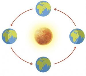 • Seasons (like summer or winter) happen because of the Earth’s revolution around the Sun.