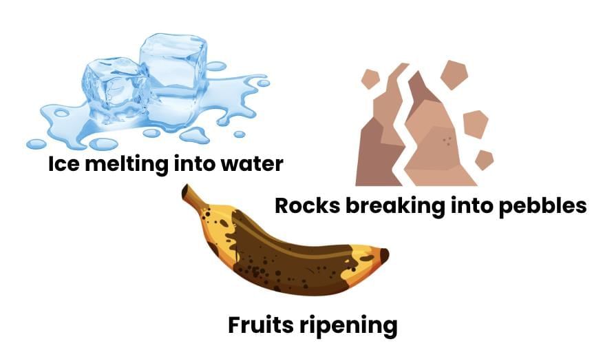 • Changes can be reversible (like ice melting) or irreversible (like a fruit ripening).