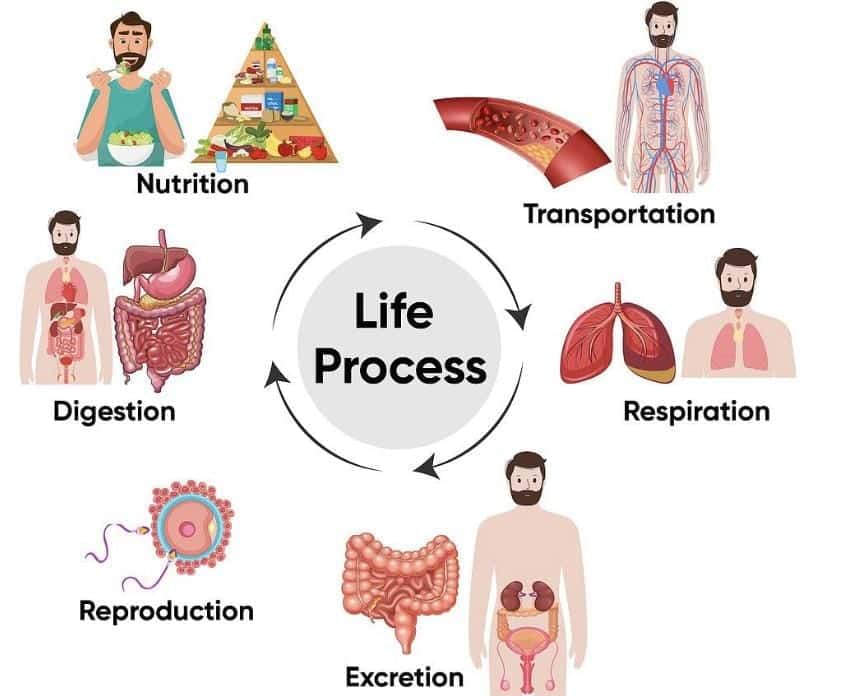 Living things carry out certain vital activities called life processes, which help them survive. In animals (including humans)
