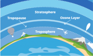 • Troposphere: The lowest layer of the atmosphere where weather happens.