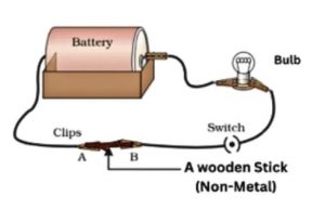 • Non-metals: Sulfur, coal, wood, stone, rubber, and nylon are poor conductors, not allowing bulbs to glow, used for insulating materials like screwdriver handles and electrician’s gloves.