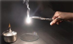 1 Magnesium• Reaction with Air: When a magnesium ribbon is burned, it produces a dazzling white flame and turns into a white powder called magnesium oxide.
