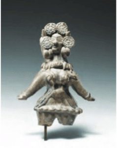 • Terracotta figurines of dancing girls and deities with elaborate headdresses and jewellery.