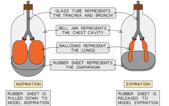 In the activity we discussed before, the balloons represent the lungs, and the rubber sheet represents the diaphragm.