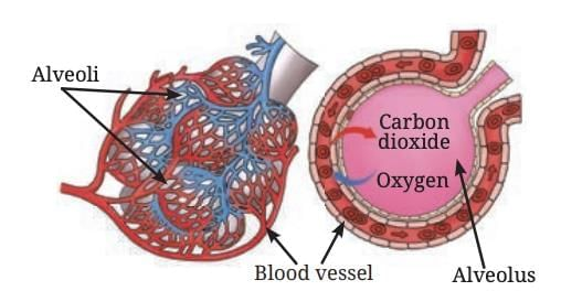• Carbon dioxide from the blood is released into the alveoli to be exhaled.