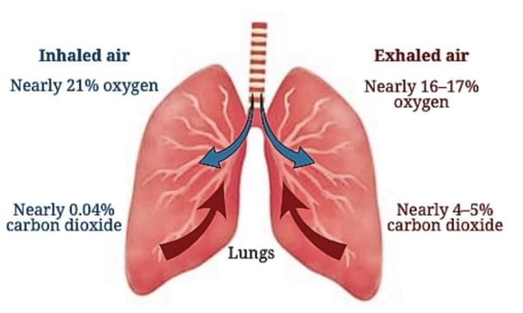 • Exhaled air contains about 16–17% oxygen and 4–5% carbon dioxide.