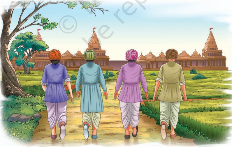 - Four young men—Ram Datt, Shiv Datt, Har Datt, and Dev Datt—are traveling along a dusty road toward Ujjain, appearing tired but resolute.