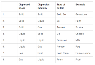 (i)Â By components we mean the dispersed phase and dispersion medium i.e. the physical state of the components. Therefore, we can have eight types of colloids depending on whether the components are solids, liquids or gases..