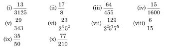 ऊपर दिए गए प्रश्न में उन परिमेय संख्याओं के दशमलव प्रसारों को लिखिए जो सांत है।