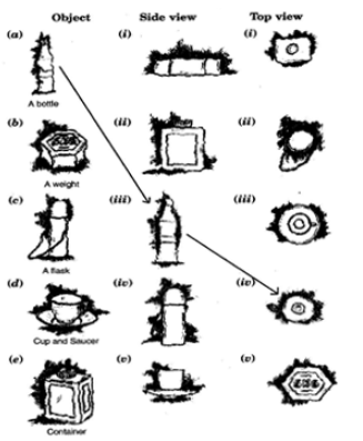 (e)Â Â ----->Â (i)Â Â ----->Â Â Front view (ii)Â Â ----->Â Â Top view (iii)Â ----->Â Â Â Side view