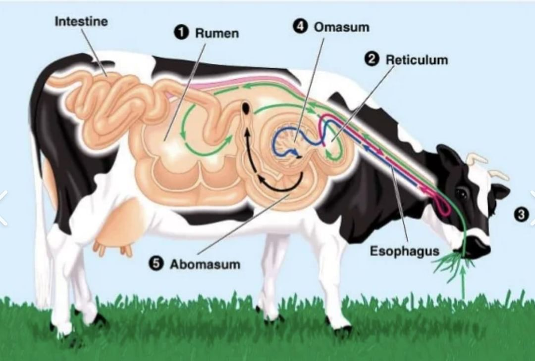 Q3: Draw a labelled diagram showing digestive system of cow.