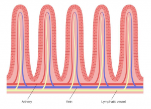 The villi increase the surface area for the absorption of digested food. Their surface is designed to effectively absorb the digested materials and transfer them into the blood. Once absorbed, these substances are transported via blood vessels to various organs of the body.