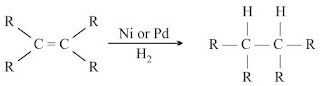Unsaturated hydrocarbon add hydrogen in the presence of catalyst palladium or nickel. Vegetable oils are converted into vegetable ghee using this process.