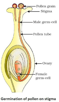 β Pollen grains germinate and form pollen tubes which pass through style to reach upto the ovules present in ovary.