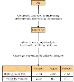 • The liquid air is warm-up slowly in a fractional distillation column, where gases get separated at different heights depending upon their boiling points.