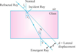 → The extent of bending of ray of light at the opposite parallel faces of rectangular glass slab is equal and opposite, so the ray emerges parallel to incident ray.