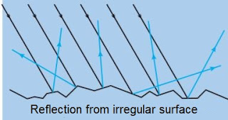 → Uneven of unpolished surfaces gives irregular reflection.