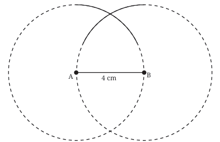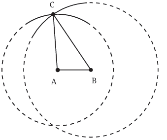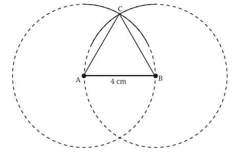 You have constructed an equilateral triangle âABC with all sides equal to 4 cm. The intersection point C is guaranteed to be 4 cm from A (because it's on the first arc) and 4 cm from B (because it's on the second arc).
