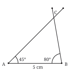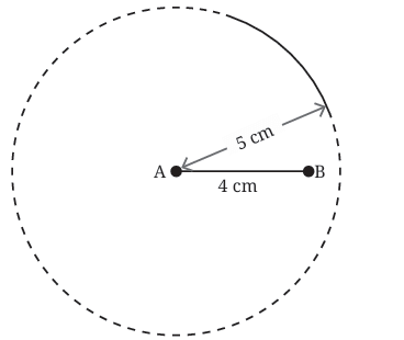 - From point A, draw an arc with radius 5 cm. This arc shows all the places where point C (the third corner of the triangle) could be, if it's 5 cm from A.
