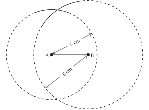 - The place where the two arcs cross is the point C. This point is exactly 5 cm from A and 6 cm from B â just like we need.