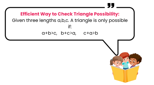 Sol:Â We will use the Triangle Inequality Theorem, which states that the sum of the lengths of any two sides of a triangle must always be greater than the length of the third side.
