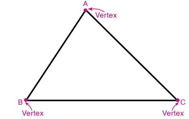 - Vertices:Â These are the three corner points where the lines meet.