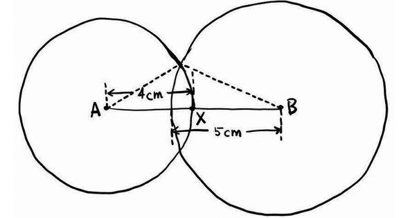 - Step 4: Find the point where the arcs meet