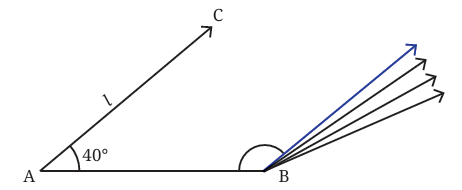 - Draw the Second Arc:Â Now, without changing the compass width (keep it at 4 cm), place the compass point on vertex B. Draw another arc that intersects the first arc. Let the point where the arcs intersect be C.