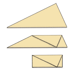 This simple folding method shows that the sum of the three angles in a triangle is always 180°. No matter what triangle you use, when you fold the corners together, the angles will always add up to a straight line, which equals 180°.