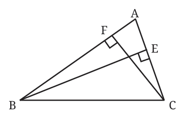 BEBE is the altitude from vertex BB to side AC. CF is the altitude from vertex C to side AB.