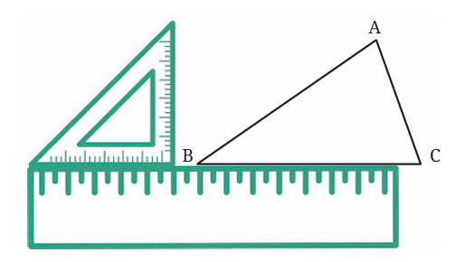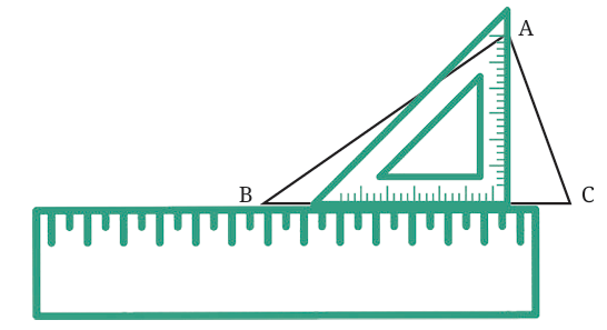Using a ruler and set square: A set square is a tool that helps you make sure you have a perfect right angle (90°). If you just use a ruler, the line may not be exactly 90°, and that's not good for our altitude. The set square helps us be accurate!