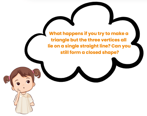 If you try to make a triangle using three points (called vertices), but all of them lie on the same straight line, then you cannot form a triangle. Why?
