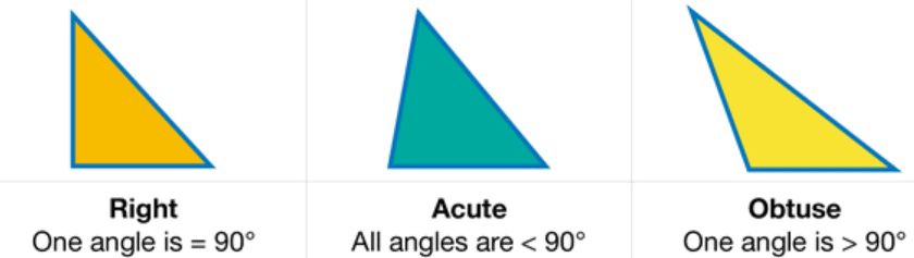 Triangles can also be classified based on their angle measures. These are: