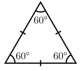 Because all sides are equal, all angles in an equilateral triangle are also equal (each measuring 60 degrees).