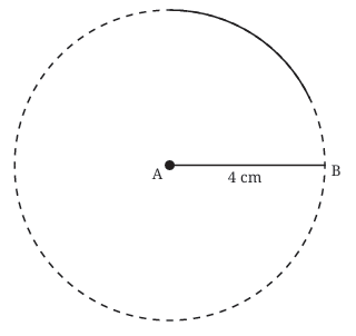 - Draw the First Arc:Â Place the compass point on vertex A. Adjust the compass width to 4 cm (the desired side length). Draw a long arc above the base line. The third vertex, C, must lie somewhere on this arc because every point on this arc is exactly 4 cm away from A