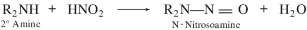 Secondary amines react with nitrous acid to form a yellow green oily layer of N – nitrosoamines. N – Nitrosoamines on warming with a crystal of phenol and a few drops of conc. H2SO4 form green solution which when treated with aqueous NaOH, turns deep blue and then red on dilution. This reaction is called Liebermann’s nitroso reaction.
