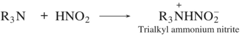 tert – Amines readily dissolve in nitrous acid forming crystalline trialkyl ammonium nitrite.