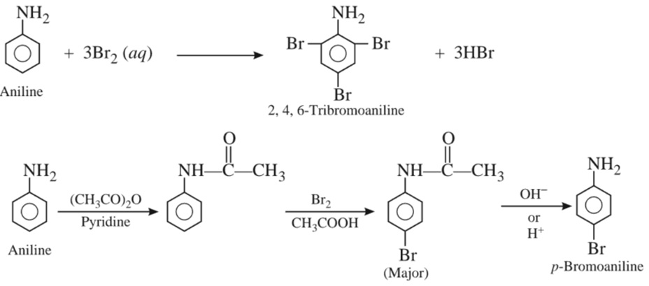 Due to resonance, electron density increases at ortho and para positions as compared to meta positions. Therefore, −NH2 group directs the incoming group to ortho and para positions.