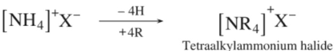 Amines are said to be ‘simple’ when all the alkyl or aryl groups are the same, and ‘mixed’ when they are different. There is another class of compounds wherein all the four hydrogen atoms of an ammonium salt have been replaced by alkyl or aryl groups. Such compounds are named as quaternary ammonium salts.
