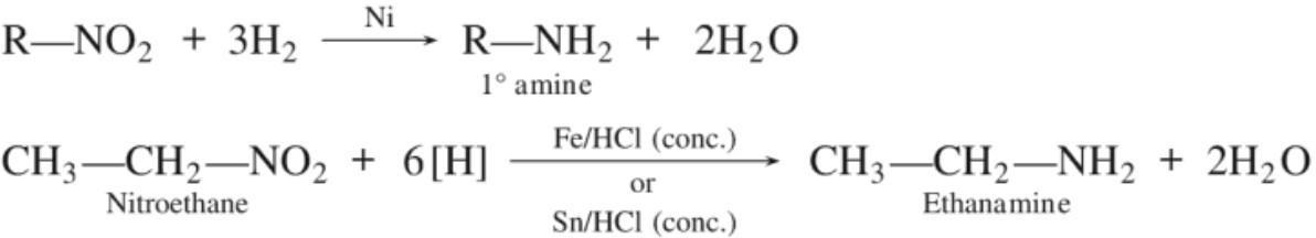 Amines are prepared by the following methods :(a) Reduction of nitro compounds :
