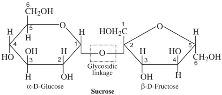 (a) Reducing sugars : Those carbohydrates which contain free aldehydic or ketonic group and reduce Fehling’s solution and Tollens’ reagent are called reducing sugars, e.g., all monosaccharides maltose and lactose.(b) Non – reducing sugars : Those sugars which do not have free aldehydic or ketonic group and do not reduce Fehling’s solution or Tollens’ reagent are called non – reducing sugars, e.g., sucrose.