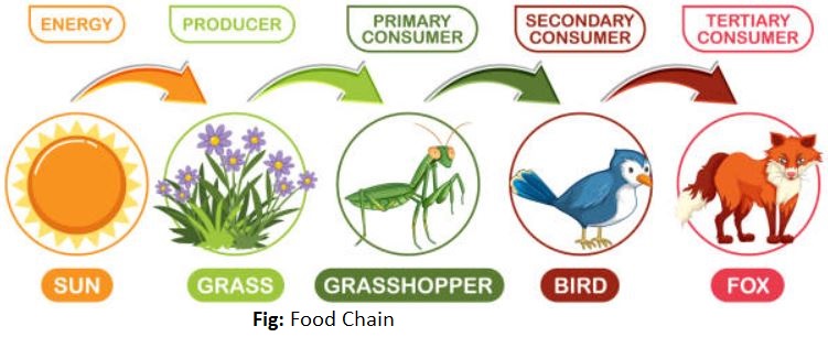 Energy flow in the ecosystem occurs in the form of food chain.
