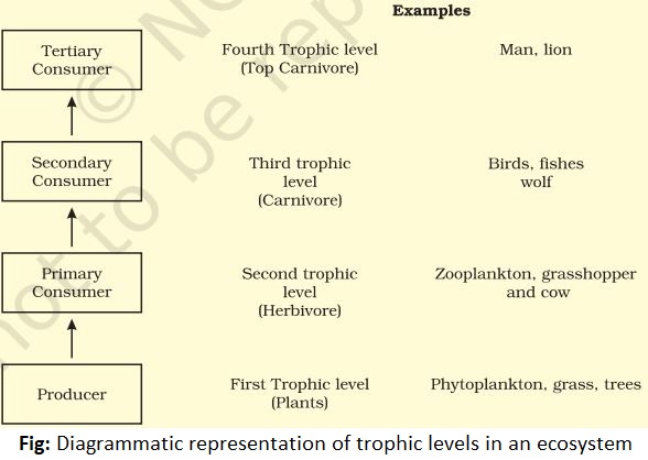 - First trophic level: Producers occupy the first trophic level.