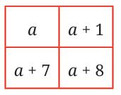 - Second diagonal = (a + 1) + (a + 7) = 2a + 8
