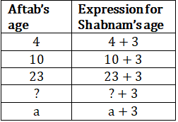 We know Shabnam’s age is always Aftab’s age plus 3 years.