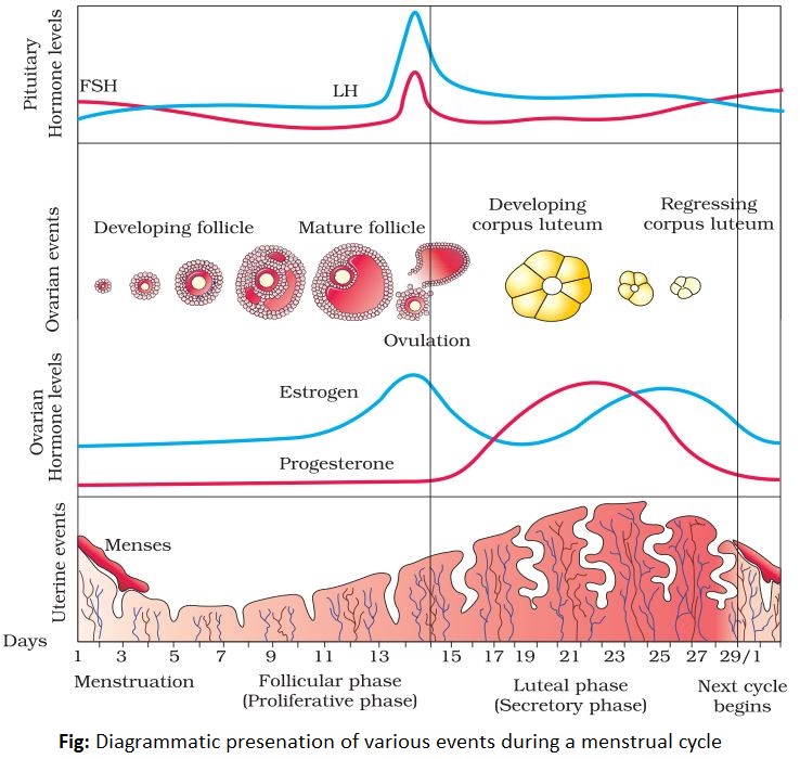- These changes in ovary and uterus are induced by ovarian hormones- Luteinising Hormone (LH) and the Follicle Stimulating Hormone (FSH).