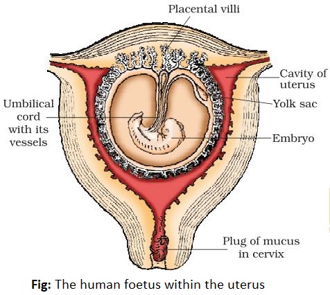 • The chorionic villi are surrounded by uterine tissue and maternal blood. It causes the chorionic villi and the uterine tissue to become interdigitated with each other and jointly form a structural and functional unit between the developing foetus and the maternal body called as the placenta.