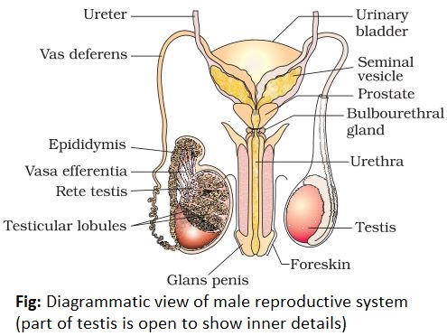 • Epididymis: It is located on the posterior surface of each testis and opens into the vas deferens.