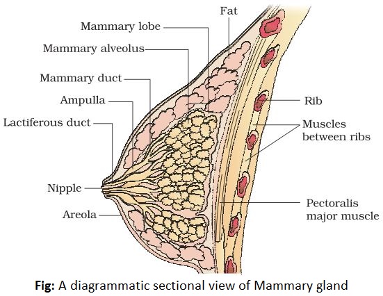 - They are paired structures of breasts that contain glandular tissue and variable amounts of fats.