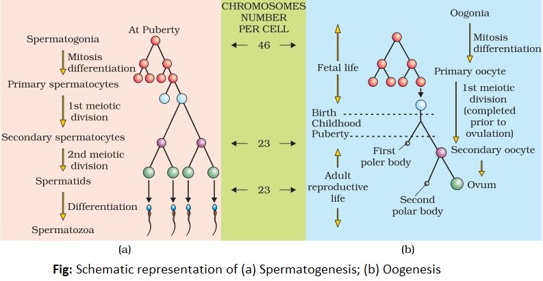 The process of formation of a mature female gamete is oogenesis and it is initiated during the embryonic development stage. During this stage a couple of million gamete mother cells or oogonia are formed in the foetal ovary. No more oogonia are formed and added after birth.